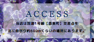 当店は国道1号線【原東町】交差点を北に曲がり約600mくらいの場所にあります。